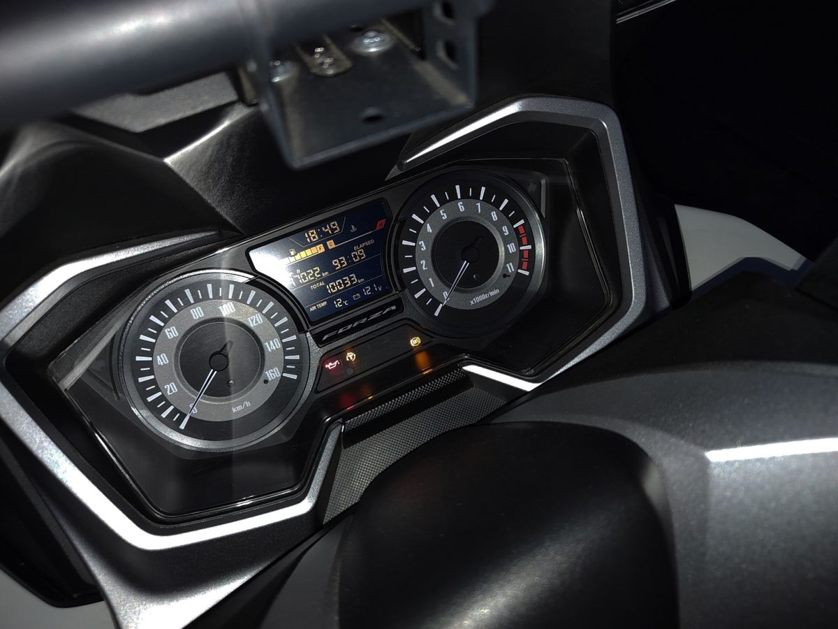 ABS, kontrola trakce, elektricky nastavitelný plexištít, palubní počítač, bezklíčové startování, uzamykatelná kapsa s 12V zásuvkou, LED osvětlení, opěrka spolujezdce na kufru, dálkové ovládání, nová baterie, držák telefonu,